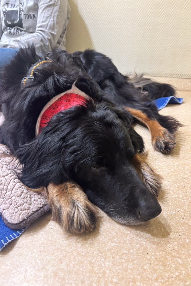 Diesen Schubs bekam ich Ende November von meiner Tierphysiotherapeutin Dr. Senger. Sie machte mich darauf aufmerksam, dass Fianna nun starke Schwierigkeiten beim Atmen hat. Im Gespräch erzählte sie mir, dass sie selbst vor Jahren ihren eigenen Hund erfolgreich mit 14 Jahren operieren hat lassen, was mir Mut gab, es vielleicht doch zu wagen.