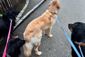 Nun habe ich also vier Hunde an der Leine. Wenn immer möglich, gehe ich ab sofort jeweilszwei Runden mit je zwei Hunden: Fianna und Hedda gemeinsam und Limba und Berti gemeinsam.