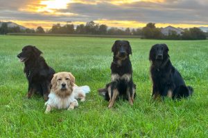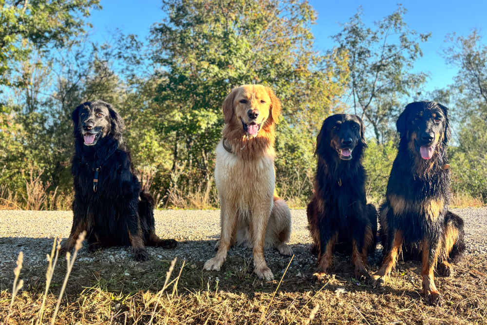 Aber wenn es zeitlich nicht hinhaut, dann sieht man mich auch mit vier Hunden unterwegs. Und das klappt erstaunlich gut, alle Vier gehorchen super und es kommt zu keinen Problemen.