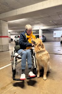 Am 1. Oktober darf Chrissi die Klinik wieder verlassen und übt bei mir erste Schritte mit Berti und meinen Hunden. Alle vorherigen Bedenken lösen sich im Nichts auf: alle Hunde sind maximal vorsichtig mit Chrissi, keiner rennt sie um oder stößt sie an und wir können Zuversicht für die kommende Zeit gewinnen.