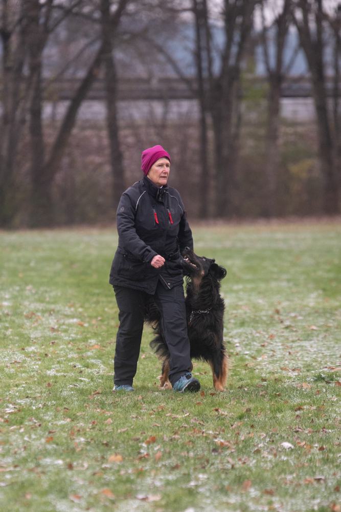 Eine Prüfung Ende November in Bayern ist immer ein gewisses Risiko, besonders wenn man an Schnee denkt. Ich war jedoch froh, dass der Termin so spät ist, da ich die Hoffnung hatte, mit Hedda die IGP2 zu absolvieren. In den Wochen zuvor habe ich intensiv trainiert, und insbesondere im Schutzdienst haben wir ziemlich viel gearbeitet, um die Lücken zu schließen.