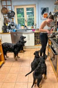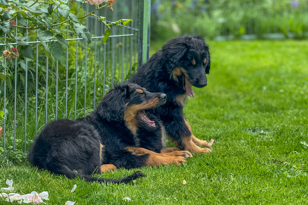 Tagsüber sind die beiden Schwestern Vollgas im Haus und im Garten unterwegs. Und nachdem sie sich tagsüber so auspowern, ist auch Loula mit dem Schlafplatz in einer Box zufrieden und die Nächte verlaufen ruhig und entspannt.