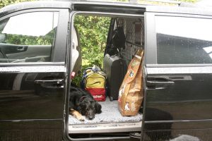 Abreisetage entziehen sich der üblichen Ein- und Wertschätzung, sie sind unvermeidlich und ungeliebt. Sie beziehen ihre Bedeutung aus dem flüssigen Abspulen von Zwangshandlungen, aus denen das Zwillingspärchen Putzen & Packen besteht. Dazu kommt noch Suchen & Finden, Sortieren & Ordnen, denn es ist ja schon erstaunlich, wie schnell man sich ein solches Haus untertan macht. Alarmstimmung herrscht in dieser Situation bei den Hunden, die keinen von uns aus den Augen lassen. Franzi löst das Problem für sich und auf ihre Weise: mit dem ersten Gepäckstück verschwindet auch sie im KIA und lässt keinen Zweifel daran, dass sie nicht gewillt ist, in dieser Datscha auszuharren, bis wir uns dereinst entschlossen haben würden, hier noch einmal vorbeizuschauen. Ach Franz, weil wir dich überall vergessen haben!