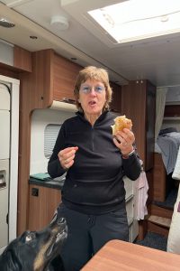 Die Hunde bekommen endlich ihre verdiente Runde, und wir abends Hähnchenbrust mit Kartoffeln und Tomatensoße aus dem Omnia. Und während wir uns die Hähnchen schmecken lassen, hat uns der Regen eingeholt. Aber er hält sich nicht lange bei uns auf und zieht weiter. Wir tun das nicht, hier ist gut ruhen.