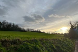 Als wir um 7:30 Uhr losfahren, hat es 4 °C bei einem türkisgrün öligen Morgenhimmel, der sich anschickt, die schweren Regenwolken nach Osten fortzuschieben. Mit einem belegten Brot in der Faust und heißem Tee im Thermosbecher verlassen wir Ispringen in südlicher Richtung. Auf unsere Fahrt die A 5 entlang liegen mächtige Nebelschwaden schwer auf den Feldern, als kämen sie direkt aus der Hexenküche, und unter der kraftvoll hochsteigenden Morgensonne hängen gleißende Nebelschwaden wie aus der Fasson geratene Engelsflügel losgelöst und goldgleißend zwischen Himmel und Erde.