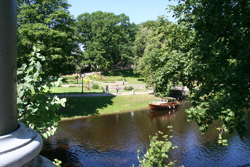 Eine Oase mitten in der Stadt ist, trotz des emsigen Treibens, der Kronvalda Park mit seinen Liegewiesen, Wasseradern und Statuen, durch den alle Wege zu führen scheinen. Diese erste Annäherung an Rīga dauert bis etwa 13 Uhr, um 14 Uhr treffen wir uns mit Ieva auf eine weitere Erkundungstour, diesmal aber ohne Hunde, außer Bonti, die heute noch Auslauf braucht, was man von unseren Dreien bestimmt nicht mehr sagen kann. Stadtbesichtigungen mögen für das menschliche Wohlgefühl erhebend sein, wenn die besichtigten Städte erheblich sind, für Hunde sind sie bestenfalls eine Reizüberflutung mit neuen Düften, an Jugendstilfassaden sind sie höchstens bezüglich einer Markierung interessiert, und für unsere Damen trifft noch nicht einmal das zu. Also, genug gesehen für heute, jetzt ist für die vierbeinige Reisegesellschaft Nachmittagsschlaf angesagt.