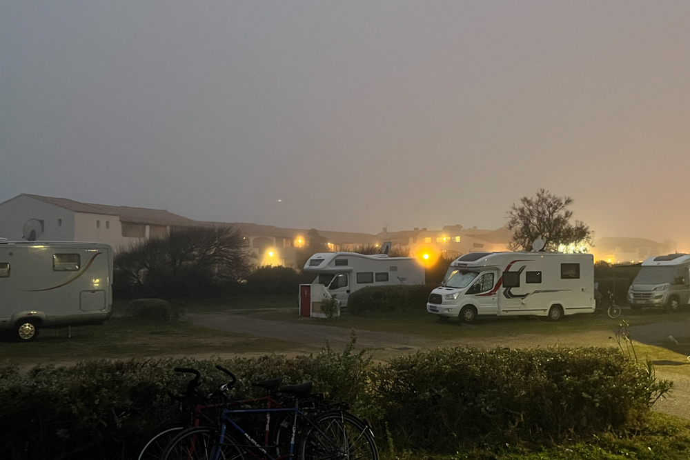 Auch heute lassen wir es gemütlich angehen. Es ist bereits 8:45 Uhr als Heike mit den Mädels losradelt, heute allerdings bei Nebel und 12 °C. Eineinhalb Stunden sind die drei unterwegs, dann gibt es ein kleines Brioche auf die Faust und einen Kaffee dazu, mehr ist nicht vorgesehen,