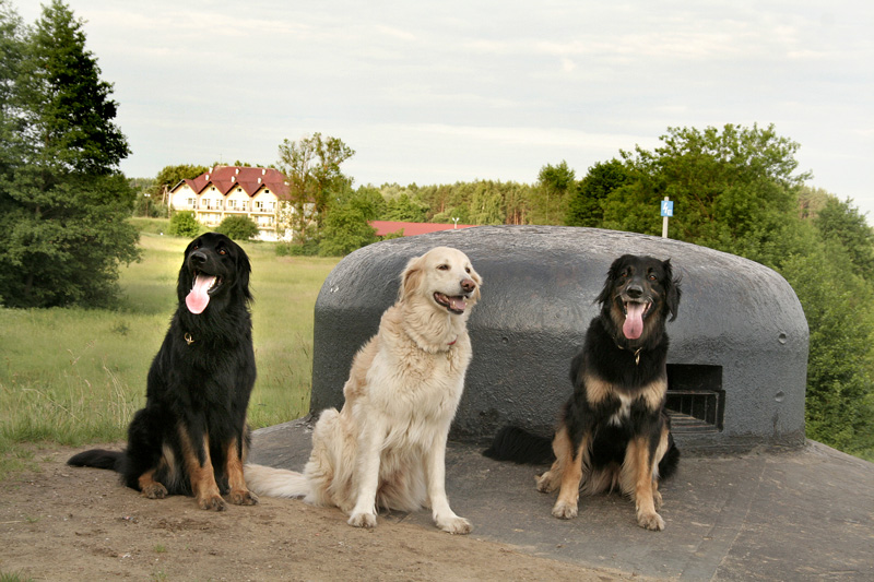 Entlang der Narew schlendernd, die hier, aus Weißrussland kommend, noch ein beschauliches Flüsschen ist, sind wir froh, diesen langen Tag zu einem guten Ende gebracht zu haben; Herbergssuche wäre das Letzte gewesen, was wir heute noch gebraucht hätten. Auch unsere Hunde sind nach diesem langen Tag ziemlich abgedreht und kaum unter Kontrolle zu kriegen. Ein alter Bunker als Brückenkopf an der Narew wirft uns wieder in die schwarzen Tage jenes rabenschwarzen 20. Jahrhunderts zurück. Egal, wohin man seinen Fuß setzt, in die Normandie oder die Bretagne ganz im Westen oder eben hier, weit im Osten, überall gemahnen unerschütterliche Zeitzeugen an die Tollwut eines ganzen Jahrhunderts.