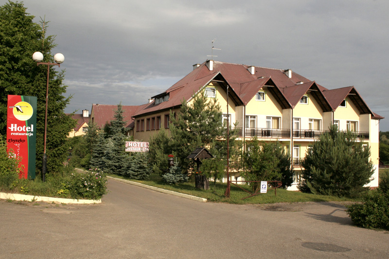 Schon zuhause haben wir uns bei booking.com in Frage kommende Hotels (drei Hunde!) hier im Nordosten Polens herausgesucht. Wir beschließen, es im Hotel Zbyszko in Nowogród, knapp 15 Kilometer nordwestlich von Lomźa zu probieren. Es ist bereits kurz nach 18 Uhr, als wir den Alptraum Ostrołeka hinter uns gebracht hatten. Bis ins anvisierte Ziel Augustów wären es noch immer 140 Kilometer, und das auf diesen Straßen. Nach Lomźa sind es nur noch knappe 40 Kilometer.